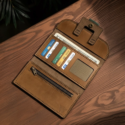 Crafted from 100% genuine leather, this women’s wallet is designed for those who appreciate timeless elegance and durability. Its stylish and modern interior features multiple card slots, a cash pocket, a bill compartment, and a zipper closure, keeping your essentials neatly organized.
